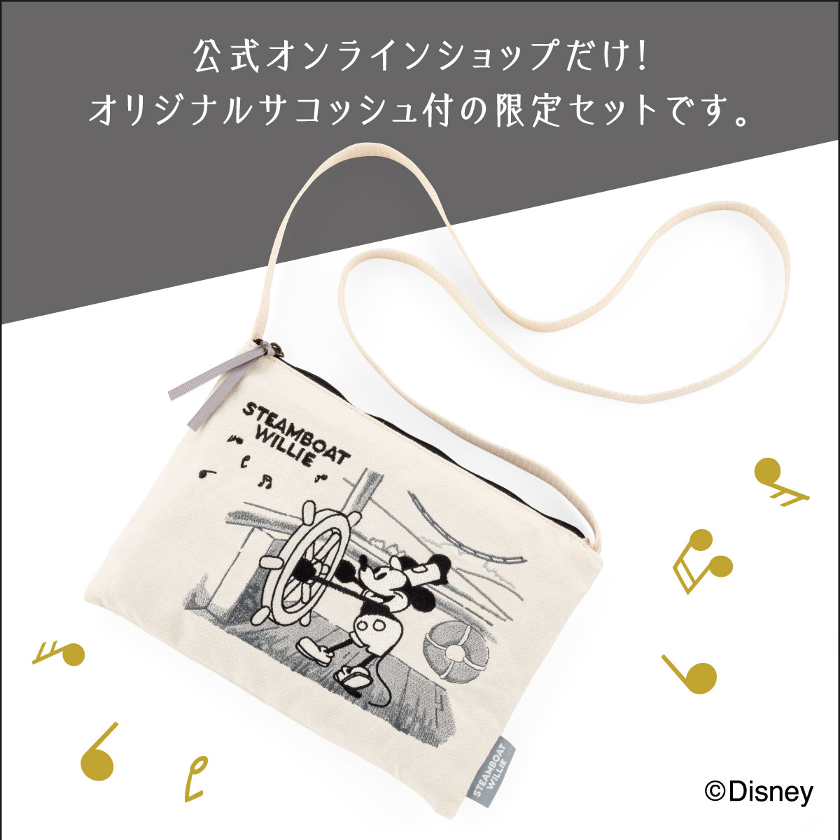 | サコッシュについて | 素材:表地 綿100%/裏地・刺繍糸 ポリエステル100% サイズ:約 横24.5×縦18cm(マチなし) ショルダー:約 幅2×長さ106cm |