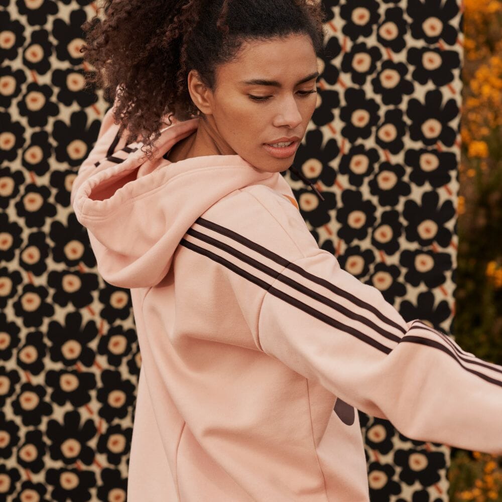 1950年代より、大胆なプリント柄でベーシックアイテムに輝きを与え続けてきたマリメッコ(Marimekko)。これは、そのフィンランド発ファッションレーベルの創造性の象徴である定番プリント柄、ウニッコ(Unikko)をあしらったアディダス スウェットシャツ。ソフトなフリースを使用し、ロング丈のルーズフィットに仕立てた一着。