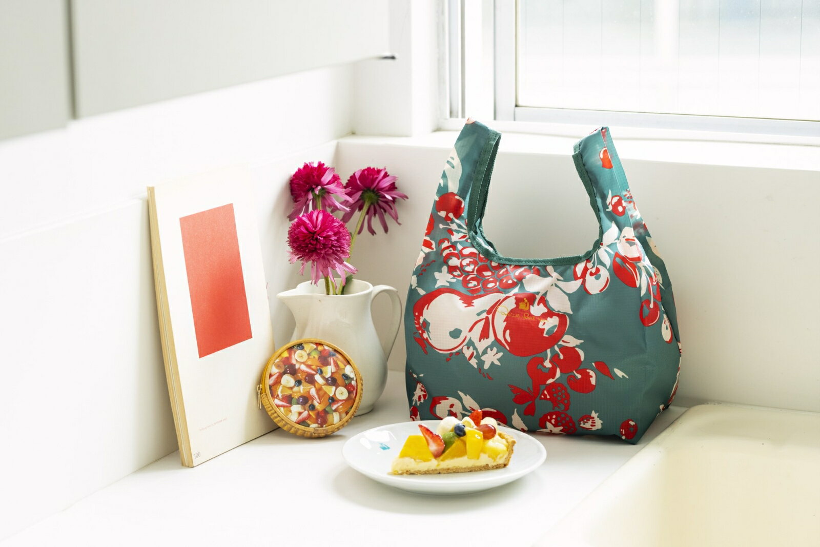 本誌限定アイテムは、店内カフェのテーブルクロスに使われているフルーツ柄をプリントした「オリジナルフルーツ柄バッグ」と、
